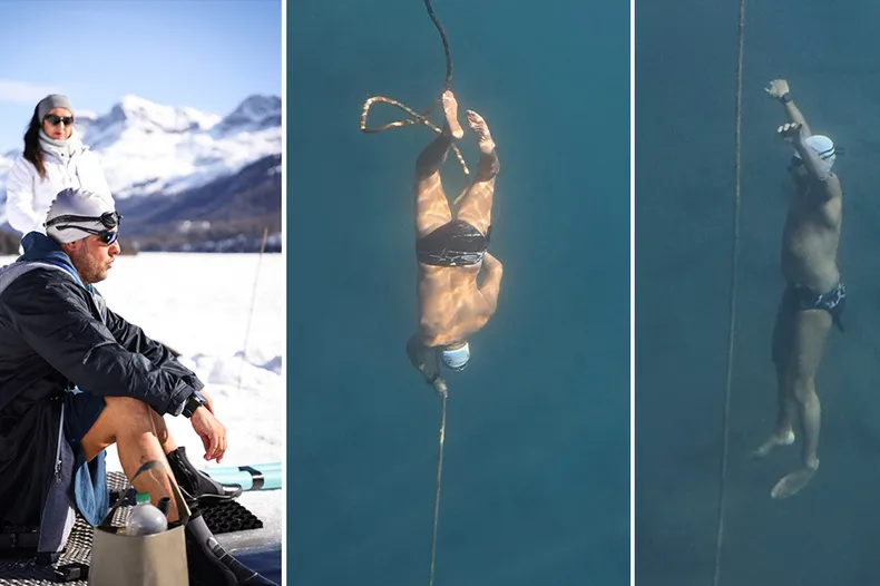 Новый рекорд: фридайвер погрузился на глубину 56 метров в ледяном озере