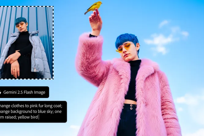 Возьмем, к примеру, старый добрый Photoshop. Теперь в нем можно пользоваться не только родной моделью Firefly, но и привлекать «тяжелую артиллерию» от Google (Gemini 2.5 Flash) и Black Forest Labs (Flux.1 Kontext). Хотите заменить скучный фон на пейзаж с марсианскими пейзажами? Просто опишите его в промте и переключайтесь между моделями, как будто выбираете фильтр в соцсетях.