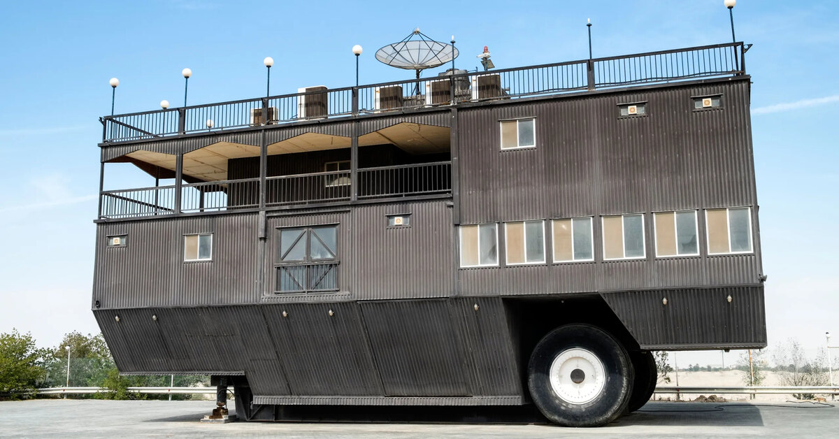 Жилое пространство прицепа разбито на пять этажей, на которых разместились восемь спален с собственными санузлами и 4 гаража. Весит этот бегемот 122 тонны, из которых 24 тонны – это запас воды в цистернах.